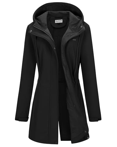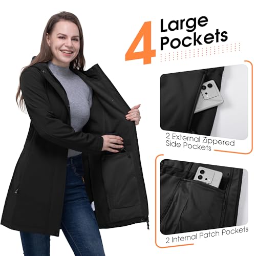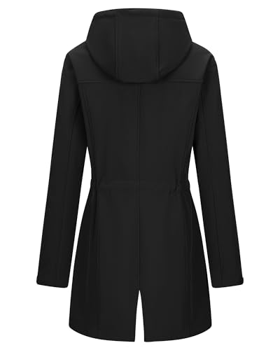 33,000ft Women’s Softshell Long Jacket with Hood Fleece Lined Windproof Warm up Waterproof Windbreaker