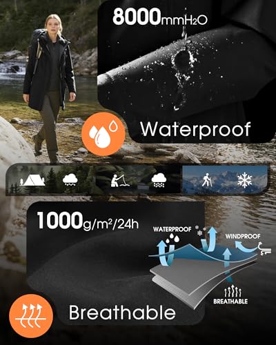 Specification: 33,000ft Women’s Softshell Long Jacket with Hood Fleece Lined Windproof Warm up Waterproof Windbreaker