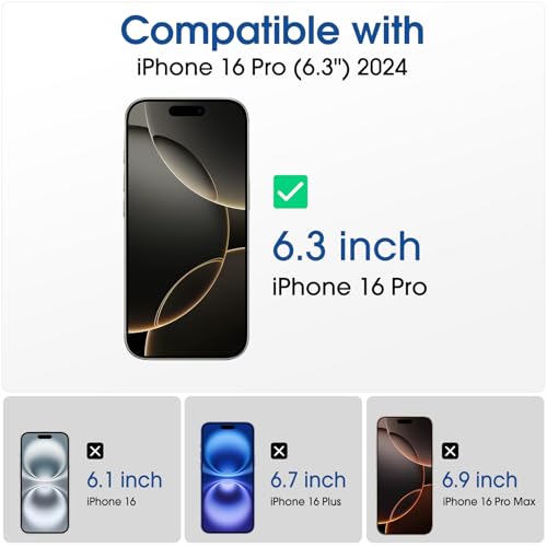 【Screen Protector Compatible with iPhone 16 Pro 6.3″】 Specially designed ONLY for iPhone 16 Pro 6.3″. Not compatible with any other iPhone models.