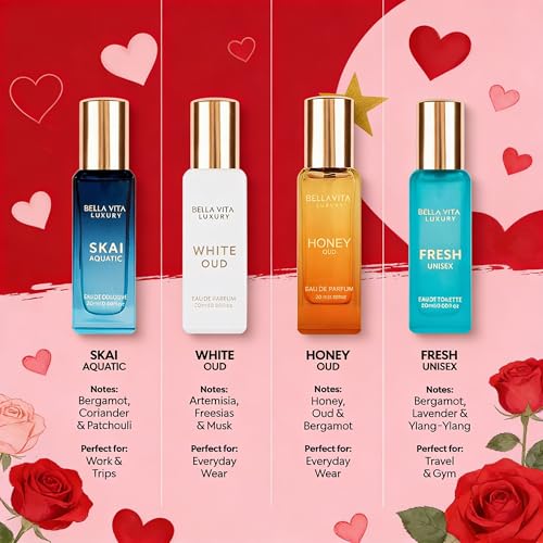 Specification: BellaVita Luxury Unisex Cologne Gift Set | 4x20ml | Fragrances Includes Honey OUD, SKAI, FRESH & White OUD | Travel Size Mini Perfumes & Spicy Vanilla Perfume Oil | Valentine’s Day Gift Him and Her