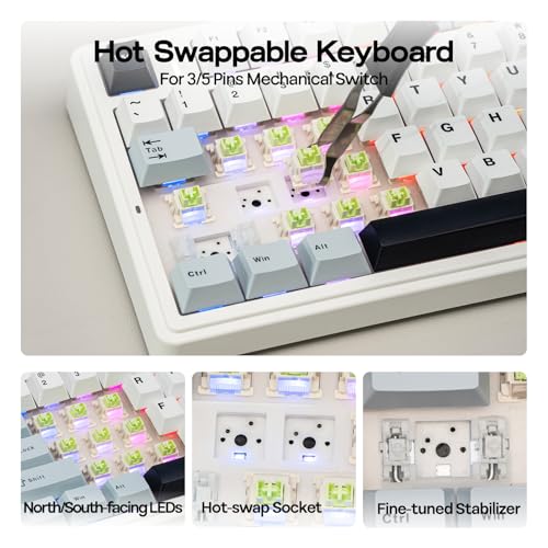 【Three-Way Connectivity for Every Scenario&4000mAh Battery】Offering BT, 2.4GHz wireless, and wired USB connectivity, the F75 adapts to your specific needs. Whether it’s for a clutter-free wireless setup or a stable wired connection, this keyboard is ready for any situation. Equipped with a large 4000mAh battery, the F75 delivers extended usage times. This generous battery capacity ensures that your keyboard is always ready for long work sessions or intense gaming marathons.