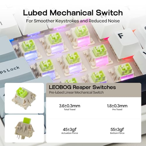 Specification: EPOMAKER x Aula F75 Gasket Mechanical Keyboard, 75% Wireless Hot Swappable Gaming Keyboard with Five-Layer Padding&Knob, BT/2.4GHz/USB-C, RGB (Light Blue, LEOBOG Reaper Switch)