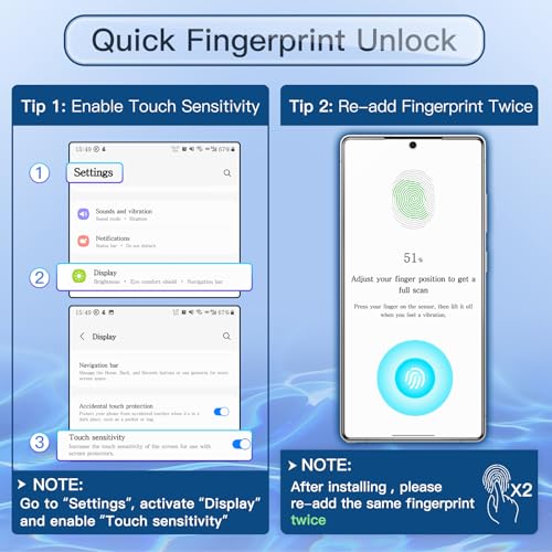 [Fingerprint Unlocked] Designed for Samsung Galaxy S25 Ultra 5G. NOTE: Not for Samsung Galaxy S25 / S25 Plus. For a better unlocking experience, please go to Settings of your device to activate the Touch Sensitivity and re-enter your fingerprint after applying the film