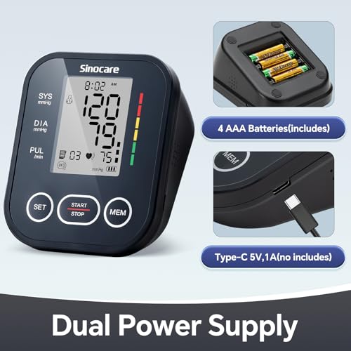 Specification: Sinocare Blood Pressure Monitor, Upper Arm BP Machine for Home, Adjustable Cuff 8.6″-16.5″, One-Button Operation, Dual User Mode, Posture Detection & Irregular Heartbeat Alert, Black