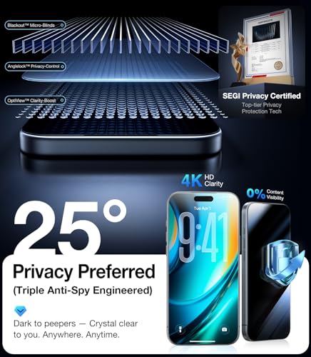 Specification: UltraGlass TOP 9H+ Armor for iPhone 16 Pro Max Privacy Screen Protector [NO.1 Military Grade Shatterproof] Privacy Screen iPhone 16 Pro Max Tempered Glass [100% Anti Spy & Longest Durable] 2 Pack